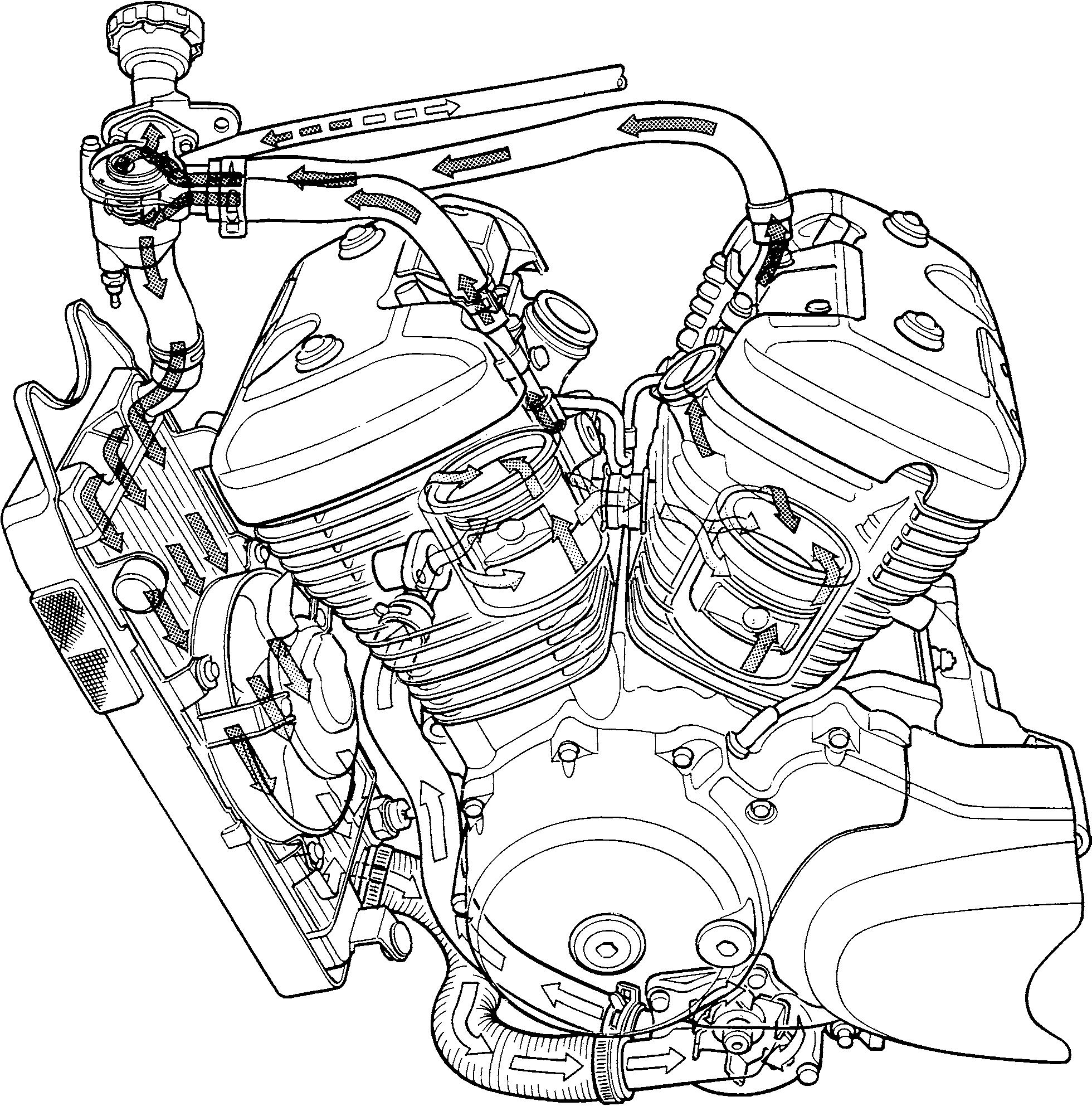 Below you will find 2 large images of the Honda Shadow VT600/VLX600 coolant routing.